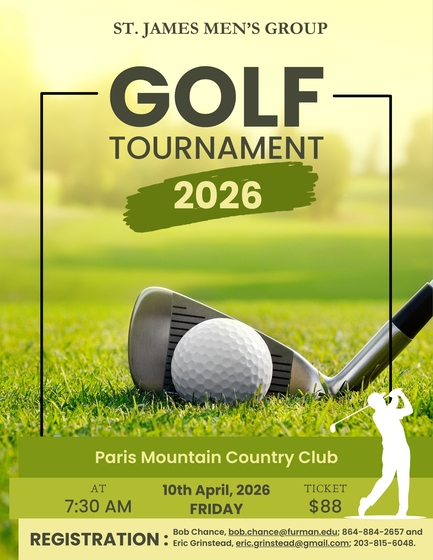 April 10: St. James’ Men’s Golf Tournament, Paris Mountain Country Club (7:30 AM)