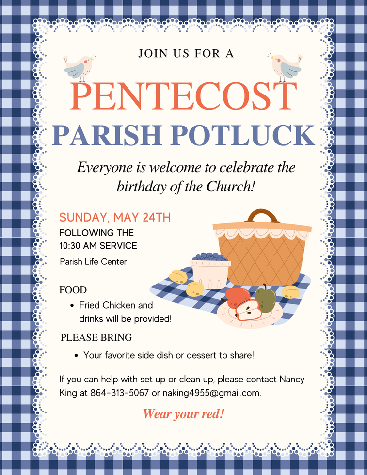 May 24: Pentecost Sunday with Baptism, St. James Community Picnic-PLC